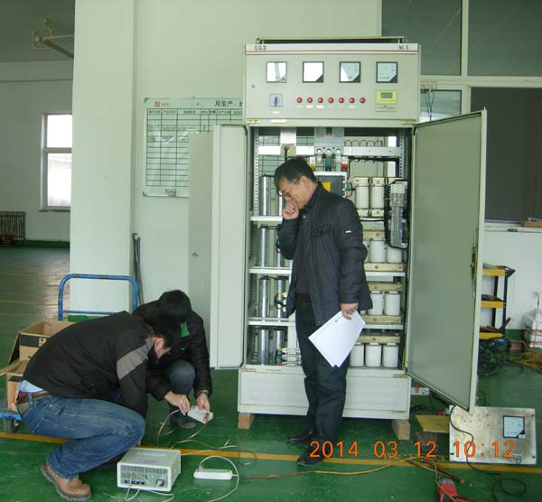 圖五:技術(shù)人員現(xiàn)場(chǎng)演示DETSC低壓動(dòng)態(tài)無(wú)功補(bǔ)償裝置工作原理
