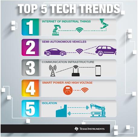 在迎接2015到來之際,我們有必要花時(shí)間來評(píng)估和預(yù)測未來的一年中將會(huì)出現(xiàn)的技術(shù)挑戰(zhàn)和突破創(chuàng)新。通過與眾多戰(zhàn)略客戶、大學(xué)合作伙伴以及TI產(chǎn)品線的技術(shù)專家進(jìn)行探討后,我們認(rèn)為TI將在一些重要技術(shù)趨勢中發(fā)揮戰(zhàn)略性作用。這些技術(shù)趨勢正推動(dòng)著汽車和工業(yè)等多個(gè)市場的發(fā)展,而在此過程中,TI的工程師將幫助應(yīng)對(duì)半導(dǎo)體技術(shù)領(lǐng)域的獨(dú)特挑戰(zhàn),并利用先進(jìn)技術(shù)改善我們的生活。